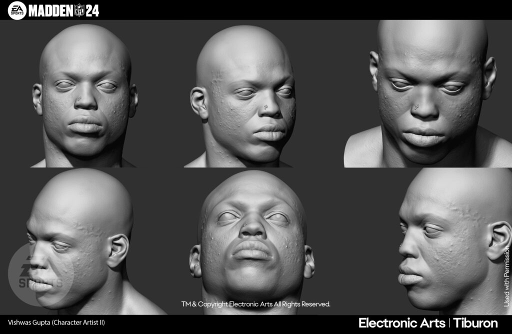 Worked on several Characters heads during my time at EA Tubron for Madden NFL 24 and 25, I was primarily responsible for creating heads for the players by using scan and sculpting traditionally in case if scan not available for the player while making there younger version from scratch with EA head mesh, Creating strand Hairs using Ornatrix and Xgen in Maya, Integrating Heads and hair in frostbite Game Engine , Reviewing and feedback for OS Head work quality and guiding them for any issue.